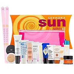 What it is:A collection of trial-sized sun protection essentials.What it is formulated to do:Try out a bevy of summer skincare must-haves! Sun exposure is the number-one cause of wrinkles and skin damage. Protect your complexion with this array of products and find your perfect match. Do something good for your skin and feel good knowing that 100 percent of the net profits from the sales of this set will be donated to The Skin Cancer Foundation. Stay safe this summer!This set contains:- 0.14 oz Murad Essential-C Eye Cream SPF 15- 0.23 oz DDF Ultra-Lite Oil-Free Moisturizing Dew UV Moisturizer SPF 15- 0.10 oz Jack Black Intense Therapy Lip Balm SPF 25 in Lemon and Chamomile- 0.25 oz Peter Thomas Roth Max Sheer All Day Defense Lotion SPF 30- 0.16 oz Kate Somerville Protect SPF 55 Serum Sunscreen- 0.27 oz Clarins Delectable Self Tanning Mousse SPF 15- 0.16 oz Cover FX BritePrep FX Brightening Foundation Primer & Photo-Aging Defense SPF 50- 0.34 oz Bliss Best of Skintentions Daily Moisturizer SPF 15- 0.23 oz Shiseido Ultimate Sun Protection Cream SPF 60 PA+++- 0.25 oz Ole Henriksen Herbal Day Cream SPF 15 - 0.25 oz Smashbox Photo Finish UVA/UVB SPF 15- 0.02 oz Bare Escentuals BareMinerals Multi-tasking Face SPF 20 in Summer Bisque- Pink Sephora makeup bag- 2 x single-use UVSunSense UV monitoring bracelets read more..